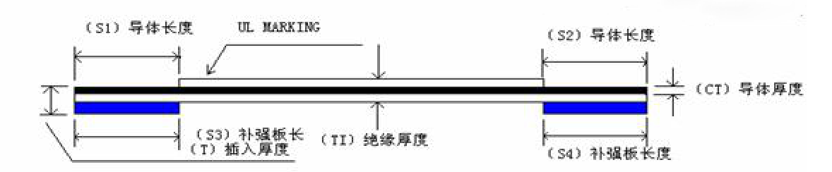 那么插接端CT的厚度呢,插接端厚度也是由三部分組成,銅線厚度,下層膠膜厚度,補(bǔ)強(qiáng)板厚度(如上面第一圖藍(lán)色部分)這個(gè)插接端常規(guī)厚度是0.3mm,如常規(guī)銅線厚度0.035mm,常規(guī)膠膜厚度0.043mm,常規(guī)補(bǔ)強(qiáng)板厚度0.225mm,加起來(lái)就是0.3mm厚度。這個(gè)也是FFC軟排線的標(biāo)準(zhǔn)插接端厚度,因?yàn)镕PC連接器的插槽的縫隙也是0.3mm,所以這樣,排線端部插入連接器就是一個(gè)標(biāo)準(zhǔn)的配合,不松不緊。